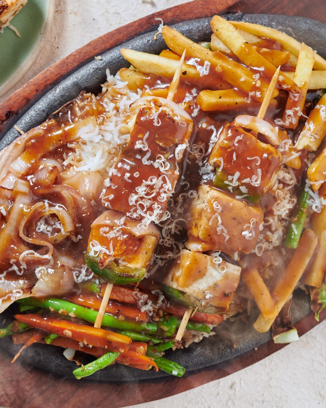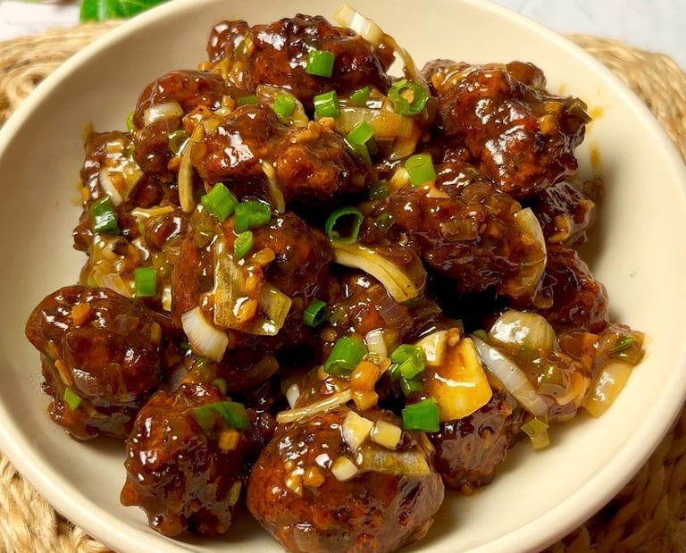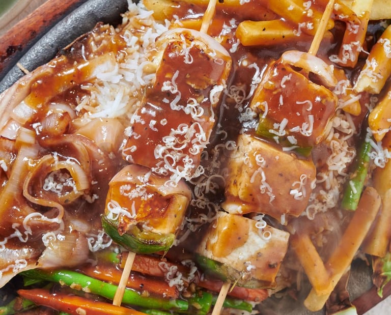 Fire-Kissed Mushrooms — tamarind glaze, shallot crisps, sea salt dust.